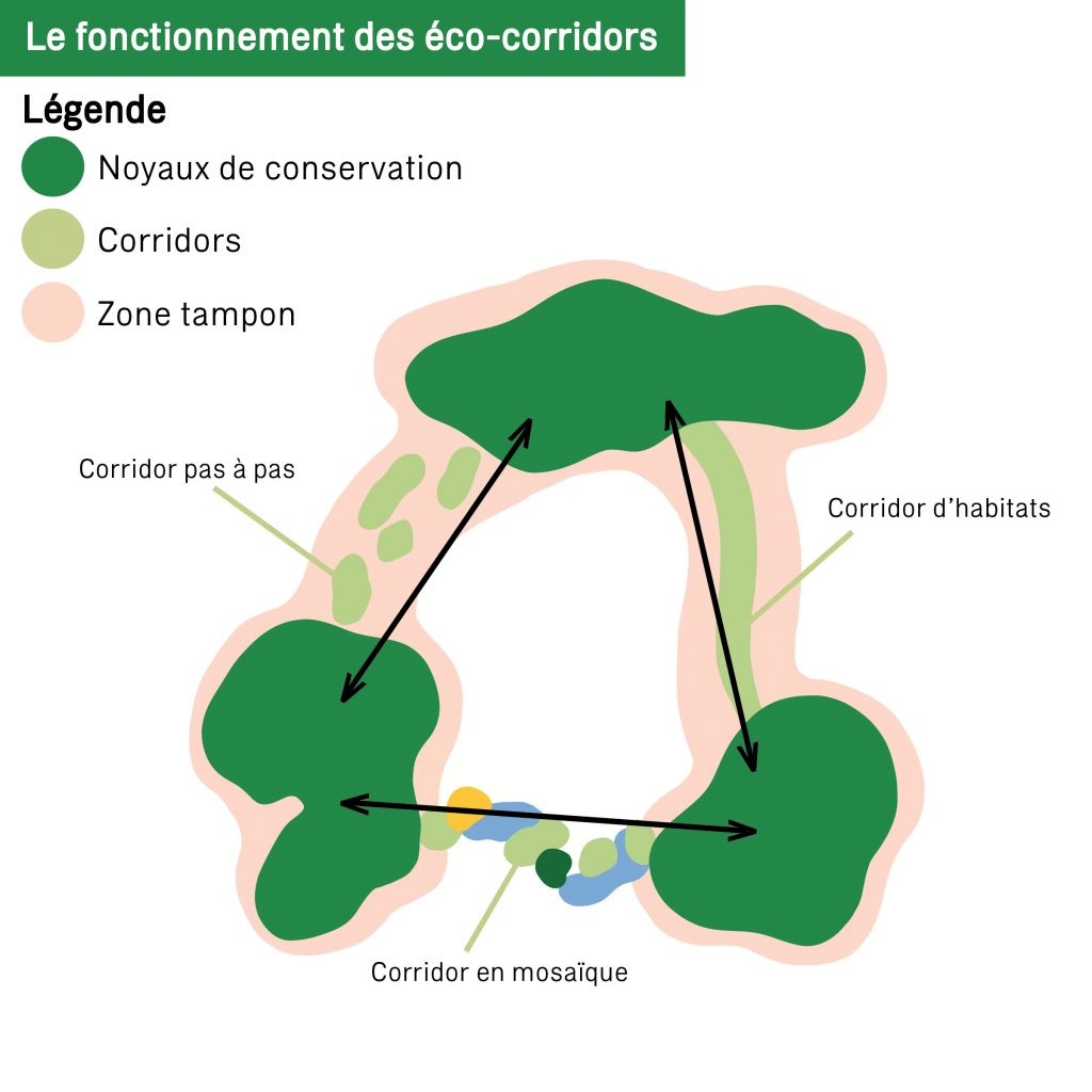 Il faut donc à la fois conserver les milieux naturels et les connecter entre eux à l’aide d’éco-corridors.